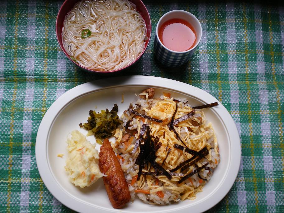 本日のメニュー: ちらし寿司(錦糸卵・干し椎茸・牛蒡