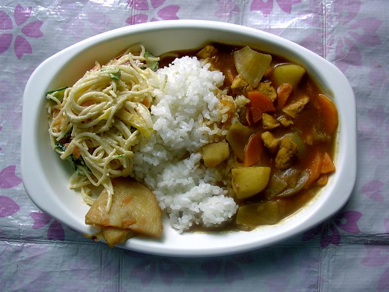 2009年6月23日(火) 本日のメニュー:カレーライス(鶏肉・じゃが芋・玉葱・人参) スパゲッティサラダ(トマトきゅうり・人参 ピーマン玉葱パプリカ・ベーコン) 天ぷらの煮物 配食数 :192人