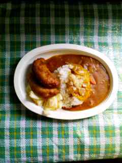 2009年9月22日(火) 本日のメニュー:カレーライス フルーツサラダ 天ぷらの煮物 らっきょう 配食数 :158人