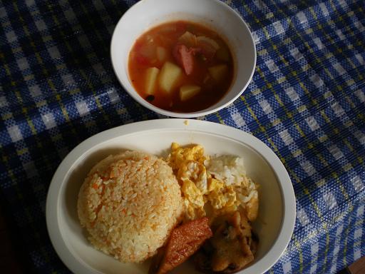 人参ライス、いり卵、大根の漬物
