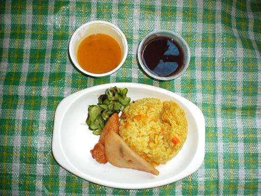 ★ スパイシーなドライカレーと甘めの南瓜スープの味が、良く合って