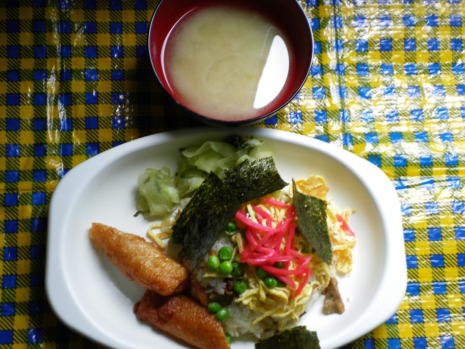 本日のメニュー: ちらし寿司(鶏肉・牛蒡・人参・干椎茸