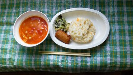 トマト味スープ(鶏肉・ベーコン・玉葱・