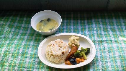 本日のメニュー: サーモンピラフ、ポテトサラダ