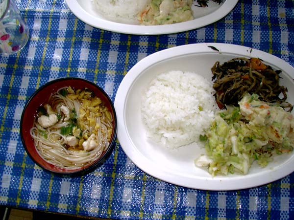 2009年5月12日(火) 本日のメニュー :豆ご飯、ひじき物(ひじき・人参・切干大根)ポテトサラダ(ジャガイモ・きゅうり・人参・玉ねぎ・ベーコン)、即席漬け(キャベツ・瓜・大葉・かつおぶし)、そうめん(わかめ・いり卵・鶏肉・ねぎ) お土産 :バナナ、トマトジュース、クッキー 配食数 :251人 ボランティア数 :数34人 ★驚くほどの、心のこもった季節感溢れる献立になりました。 頂き物の食材を利用した結果です。普通の家庭でも、なかなかここまで出来ないな あと、感動しました。週に一回の作業ですが、スタッフの息もピッタリ合い、皆が 調理に対して、誠実に取り組んでいる表れだと思います。